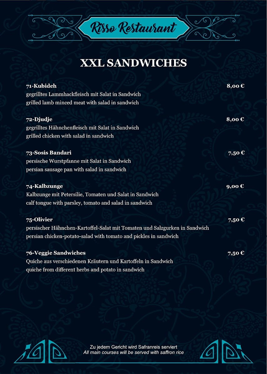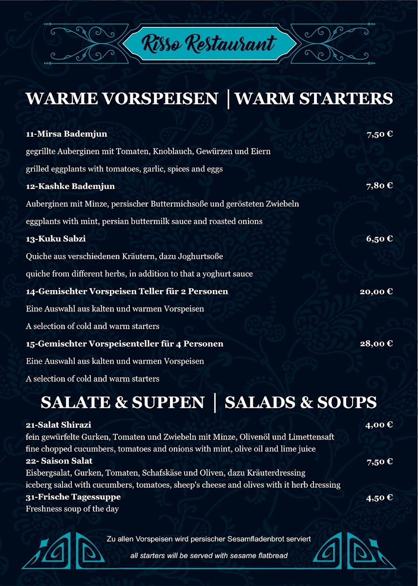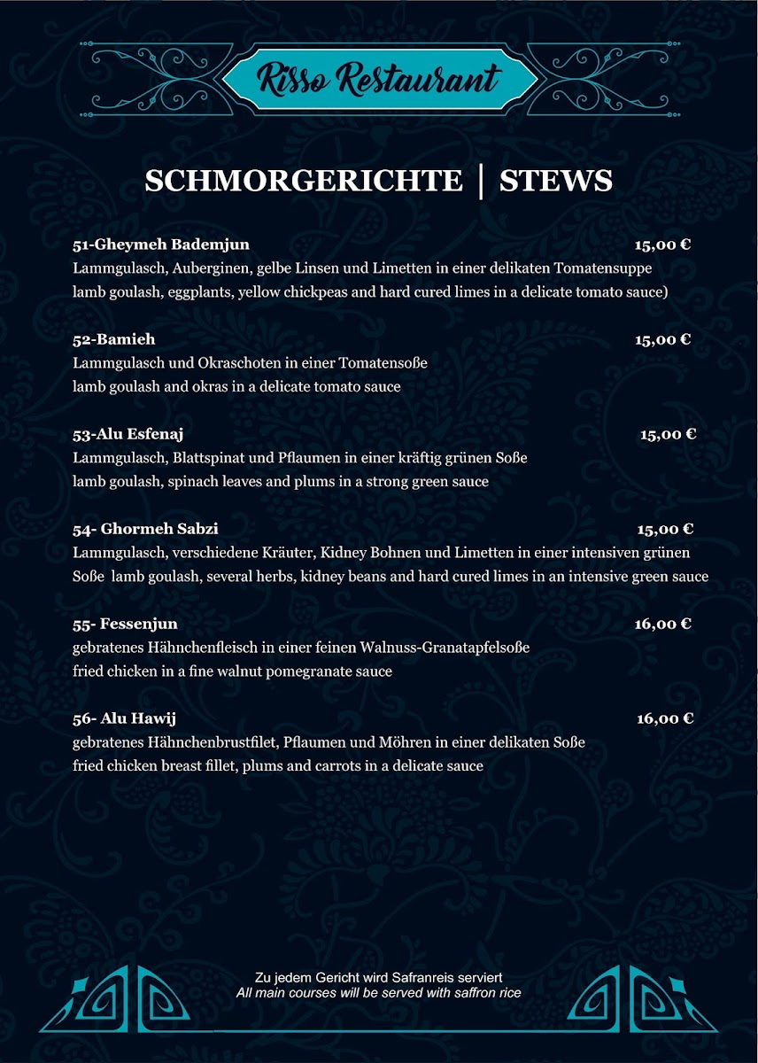 Welcome to Restaurant Risso Persiches, a culinary gem nestled in Düsseldorf. This charming establishment is renowned for its authentic Iranian cuisine, offering a delightful array of dishes that transport you to the heart of Persia. From the rich and flavorful kashke bademjan to the succulent khoresht gheyme bademjan, every dish is crafted with care, reflecting the essence of home-cooked meals.